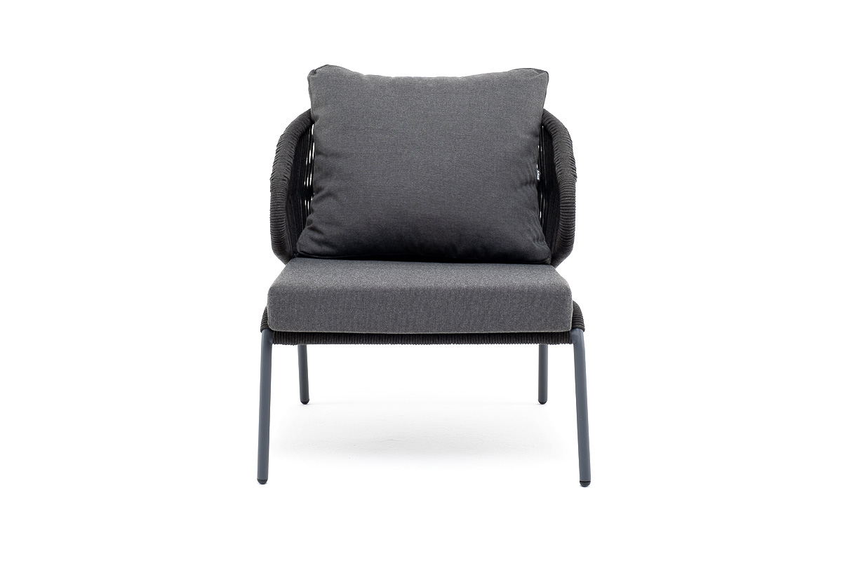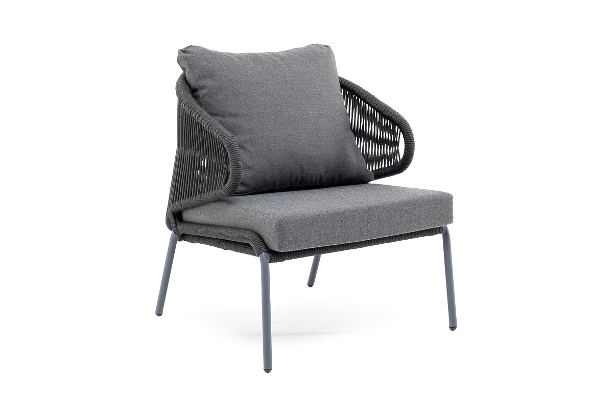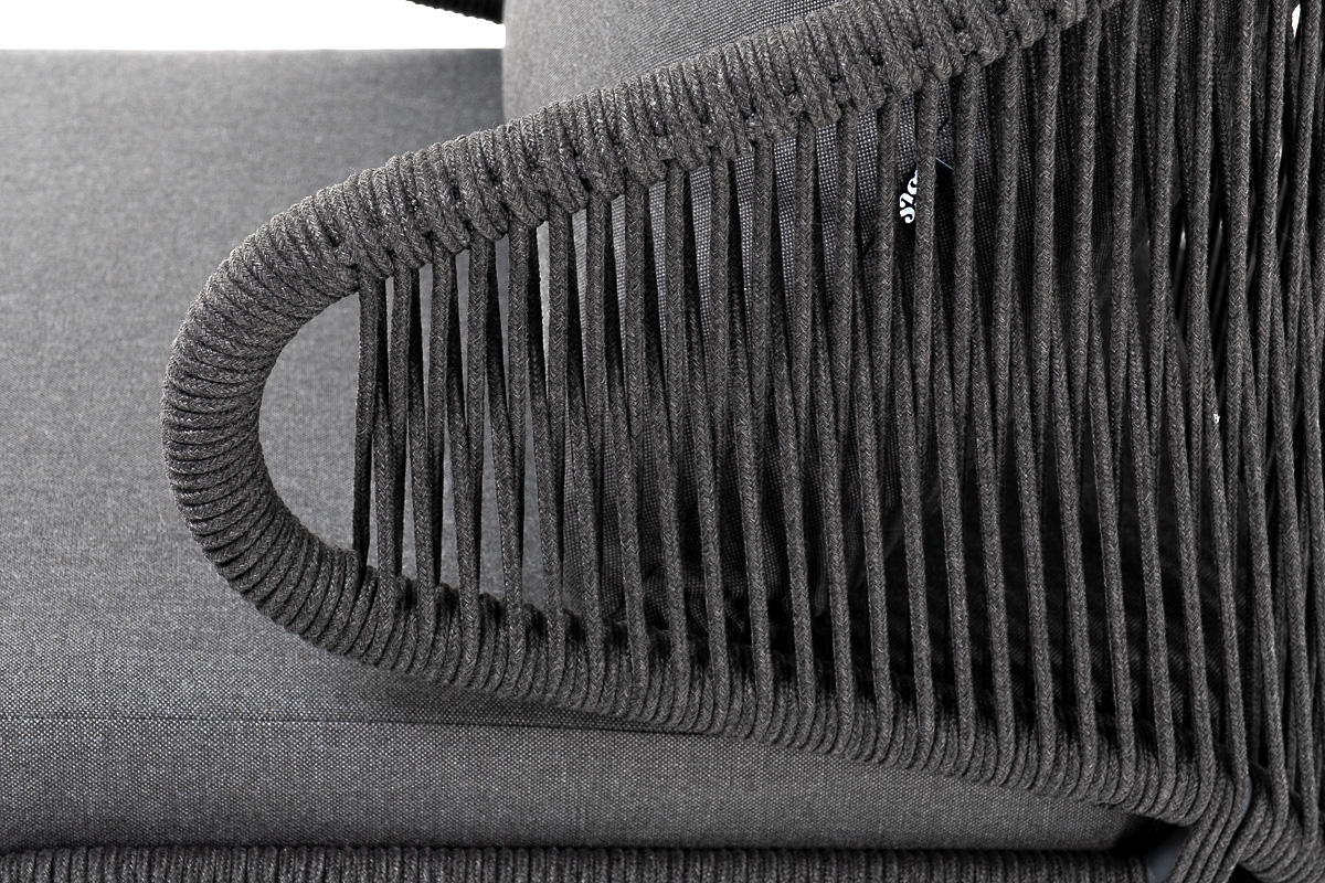 "Милан" кресло плетеное из роупа, каркас алюминий темно-серый (RAL7024) муар, роуп темно-серый круглый, ткань темно-серая 027