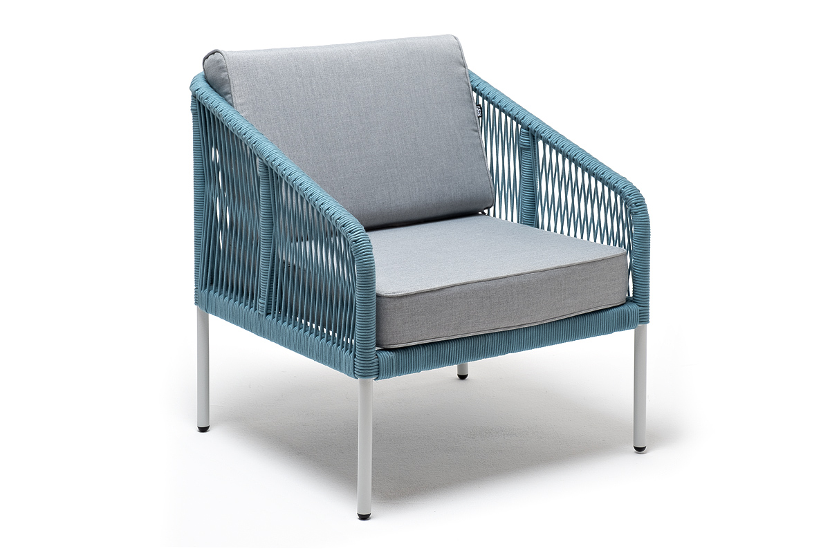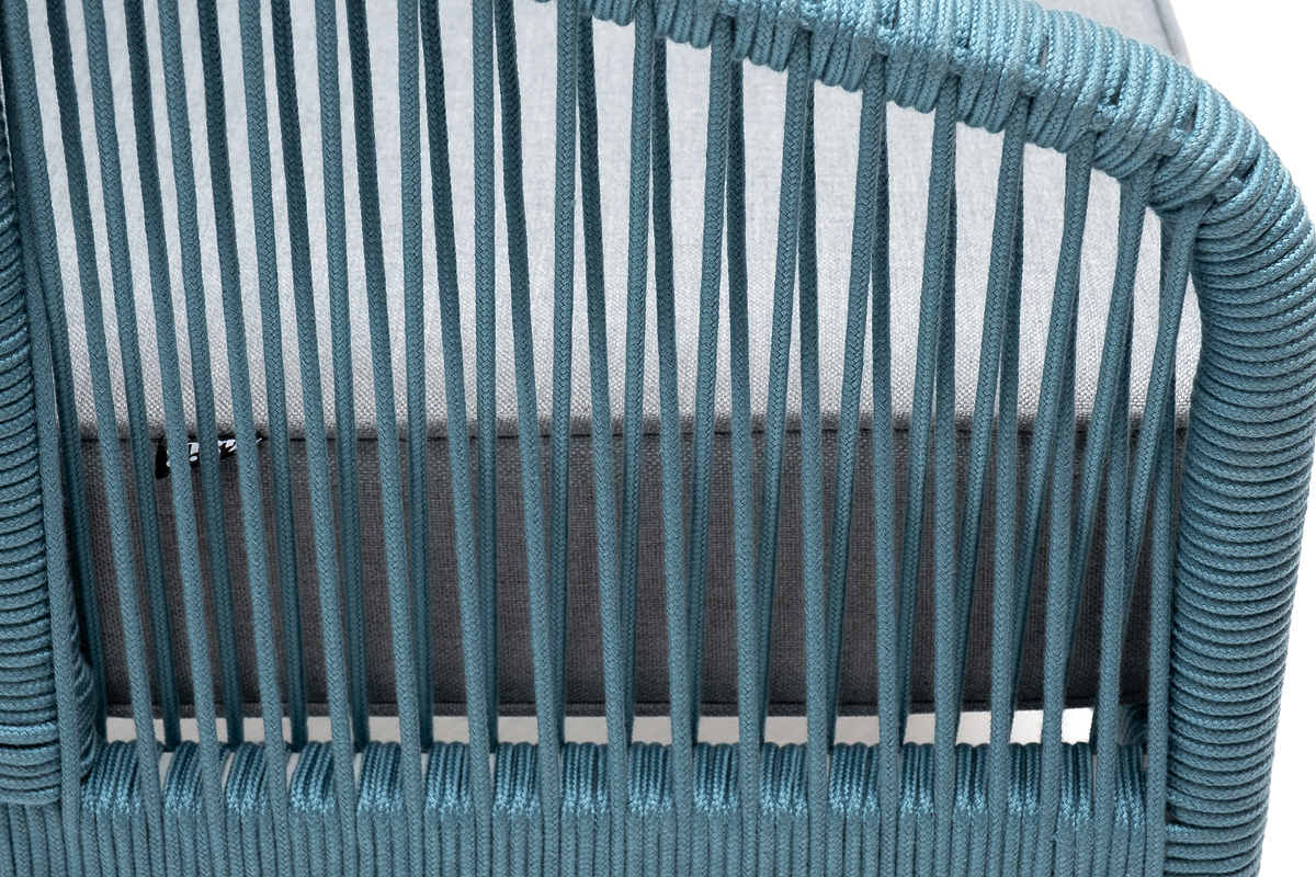"Канны" кресло плетеное из роупа, каркас алюминий светло-серый (RAL7035) муар, роуп бирюзовый круглый, ткань светло-серая
