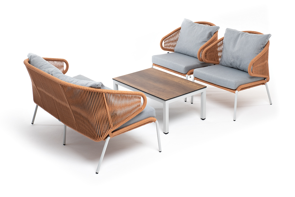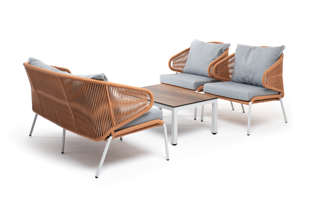"Милан" лаунж-зона 4-местная плетеная из роупа (веревки), каркас алюминиевый светло-серый, роуп оранжевый меланж