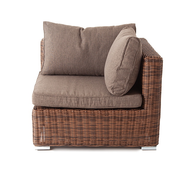 Угловой модуль из круглого искусственного ротанга «Лунго» является одним из звеньев для создания лаунж зоны по индивидуальным потребностям.